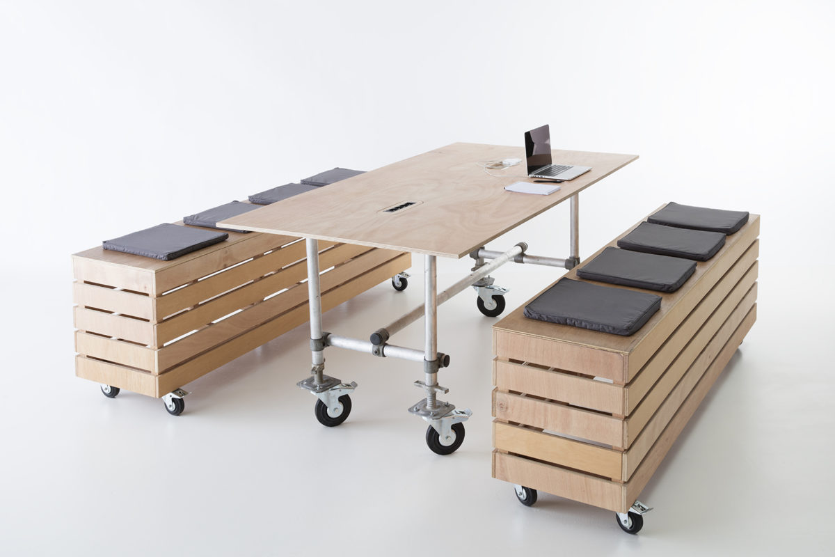Nu ou avec ses 4 coussins, seul ou associé à la table sur roulettes pour meubler un espace de travail. Avec sa hauteur et ses 50 cm de largeur, il peut également être détourné de sa fonction première pour exposer des produits.