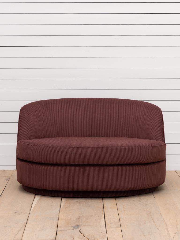 Très jolie banquette lie de vin 2 places au design résolument rétro et à l'assise confortable.
