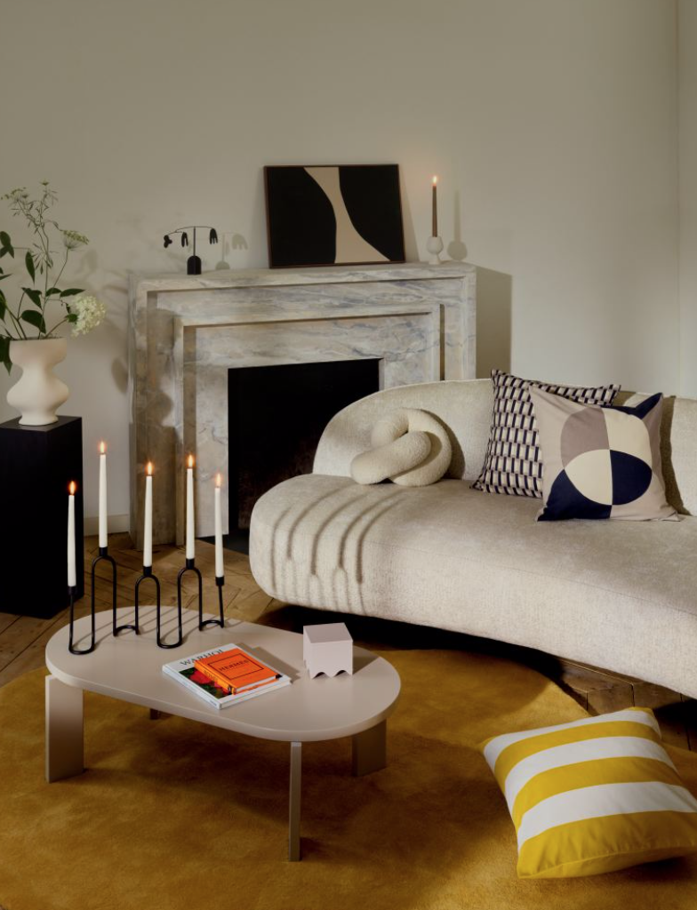 Joli coussin en velours rayé jaune. Les rayures sont incontournables dans les aménagements !