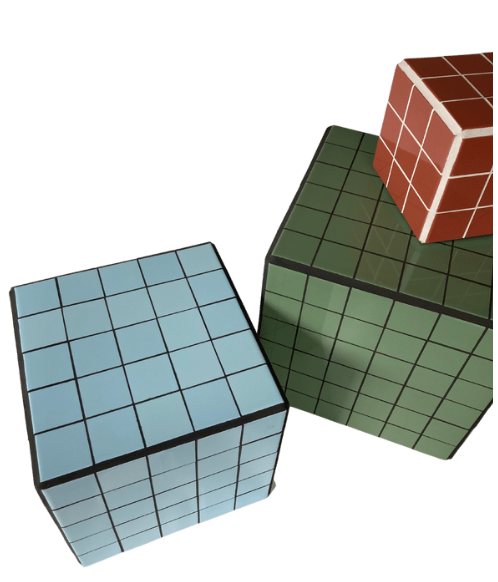 Joli cube en carreaux de céramique issus du réemploi, collaboration avec atelier camion. Petite table d'appoint, bout de canapé, cache-pot, il est parfait pour tous les usages.