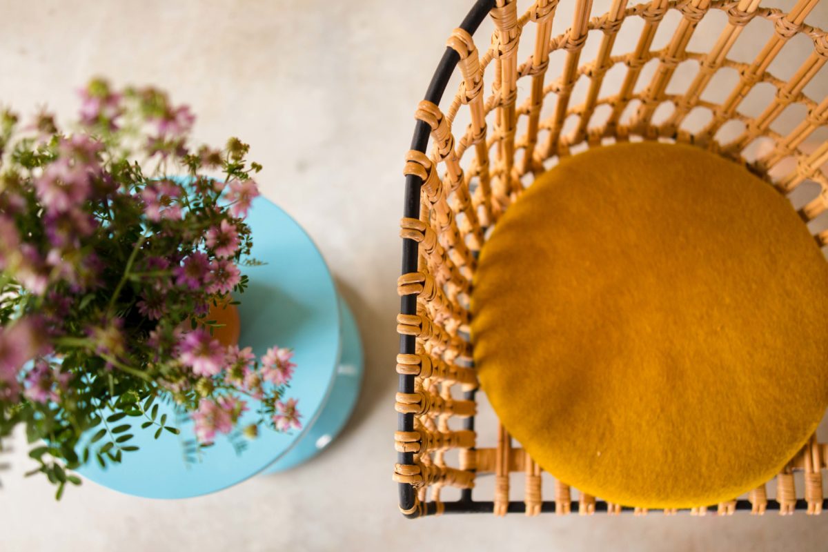 - Matière : rotin, tissu et métal