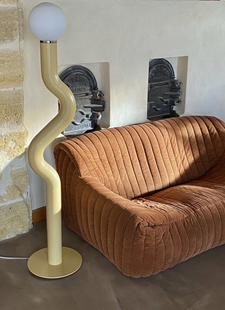 Magnifique lampe sur pied, en métal et opaline, entièrement artisanale. Très gros coup de coeur pour le travail de Julie Lansom.
