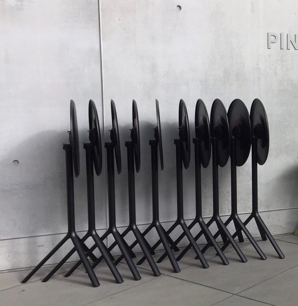Ce mange-debout pliant en métal noir marie parfaitement élégance et praticité. Avec ses 3 pieds et son plateau aux bords arrondis, c'est un incontournable des événements.