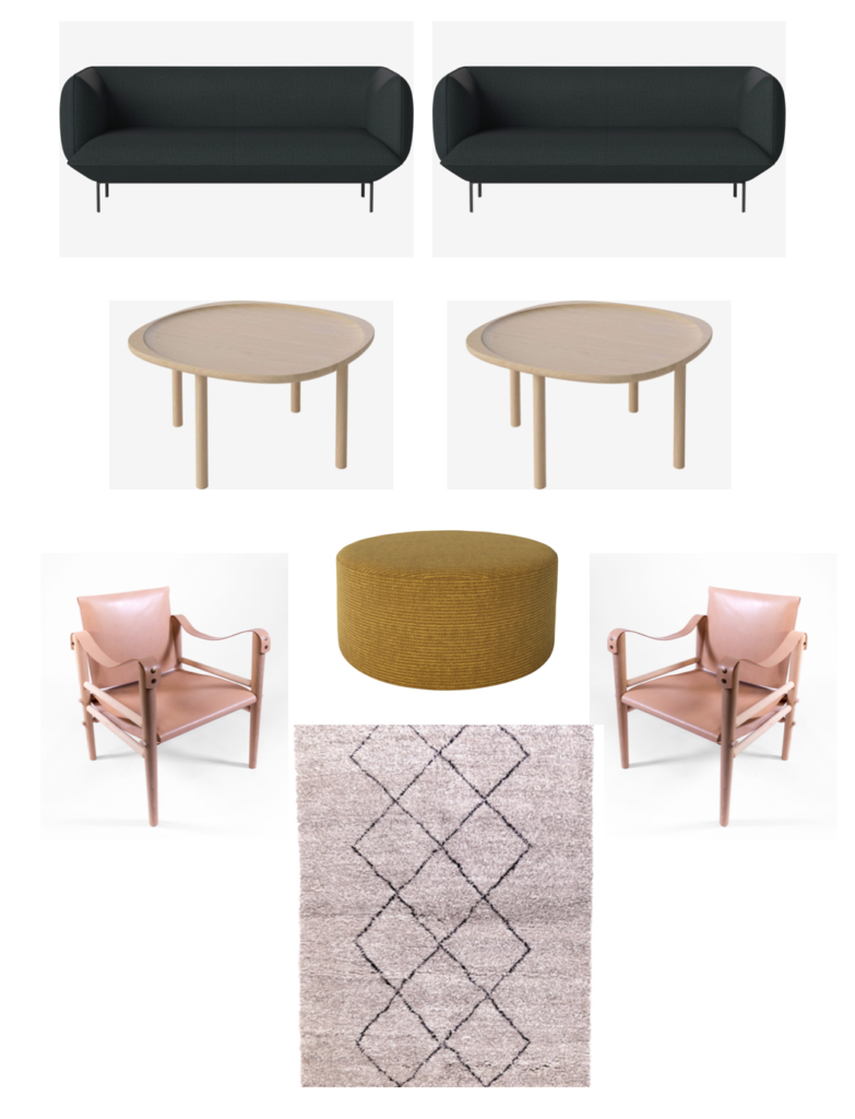 Ce pack permet de meubler un espace salon généreux, avec des pièces de mobilier design et chaleureuses