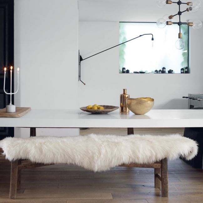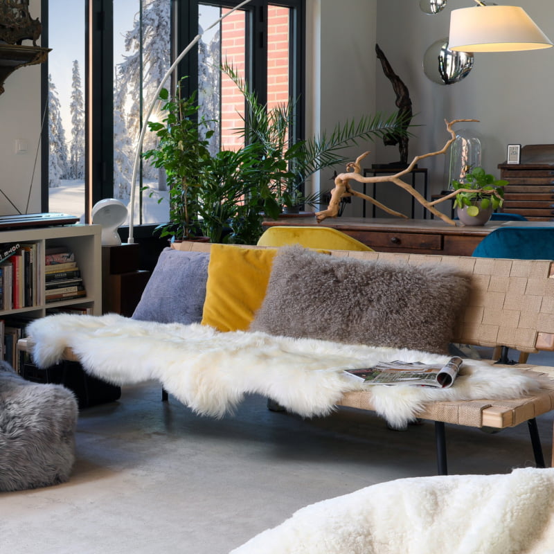 Cette peau de mouton longue est parfaite pour réchauffer un banc ou une banquette. Elle existe également en gris clair.
