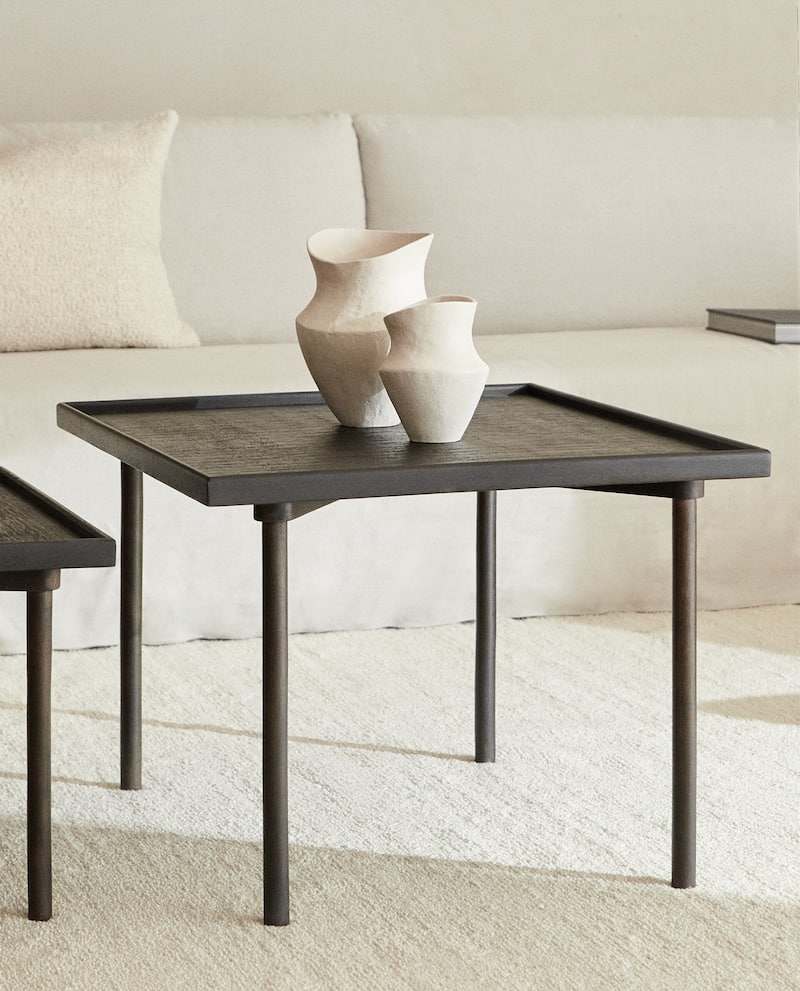 Jolie table basse en bois de manguier. Sa couleur noire la rend originale et élégante.