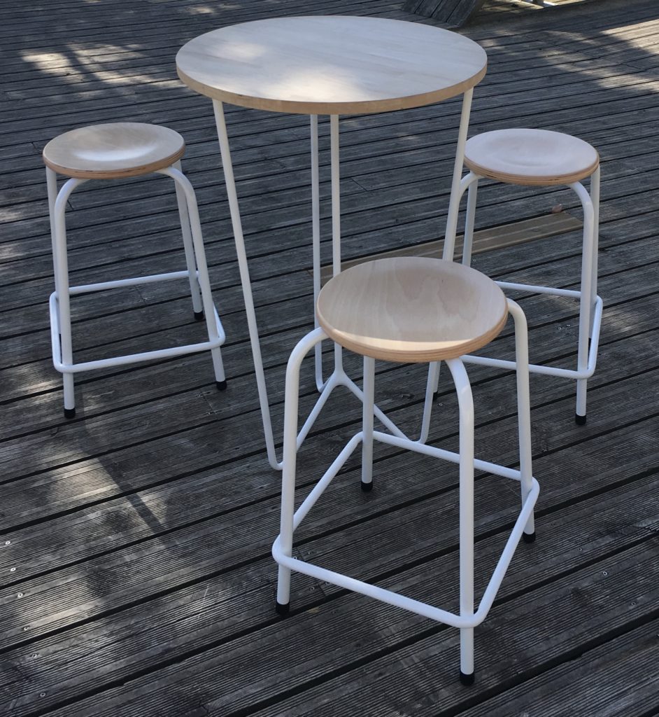 Déclinaison de l'emblématique tabouret d'école empilable, fabrication française