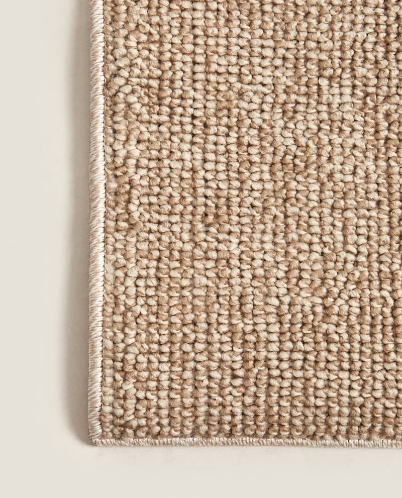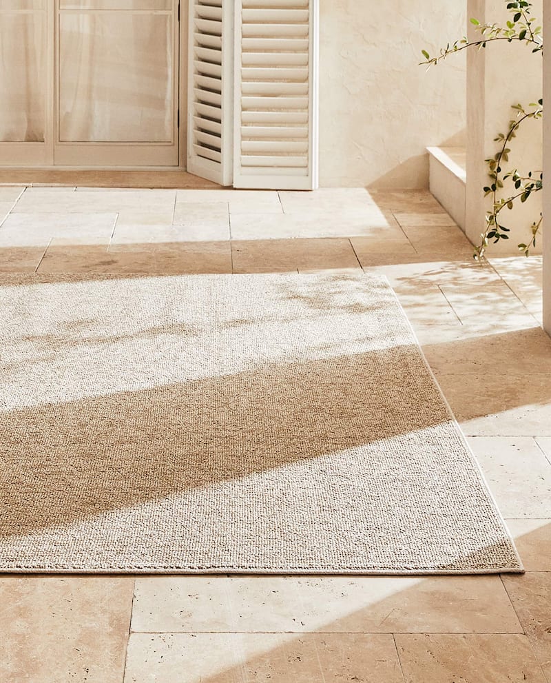 Tapis à bouclettes beige pour un usage intérieur et extérieur. Sobre et élégant.
