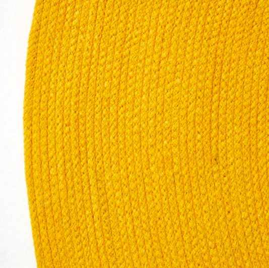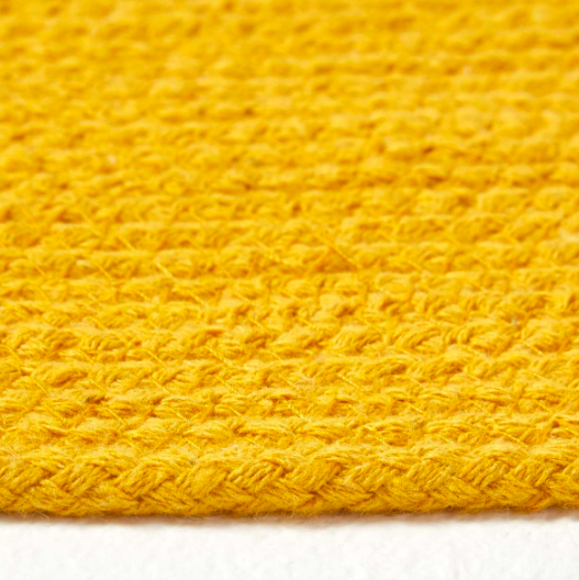 tapis rond tissé à plat en coton jaune moutarde.