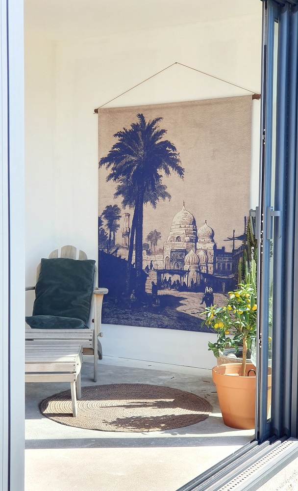 Magnifique tenture murale "la Médina", création unique et originale de la maison d'édition les Maturins, entièrement réalisée en France. "La Médina" bouscule les perspectives et les codes dans un format XXL.